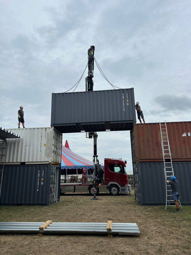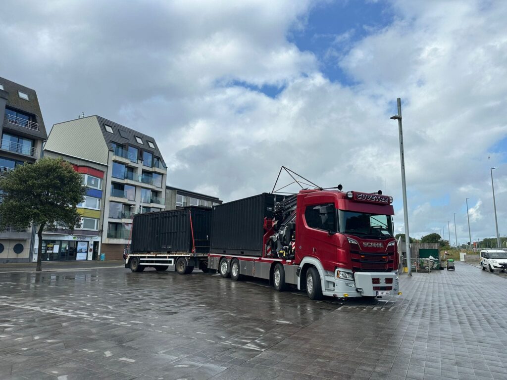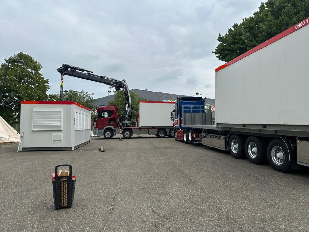 Plaatsen van werfcontainers, materiaalcontainers en grote machines.